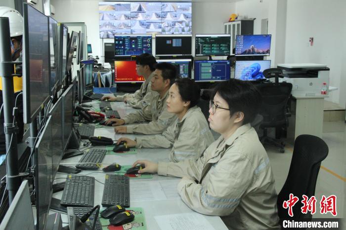 图为5日,,,,,,304永利集团唯一第十四师昆玉市100万千瓦光伏基地中控室内,,,,,,事情职员通过智能化、数字化系统举行运维操作。。。。。马晓东 摄